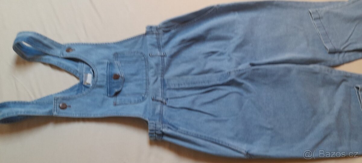 Prodám těhotenské džíny s laclem /tzv. krtkáče/, v pase popínatelný pásek na gumu, šráky na knoflíky, vel. S