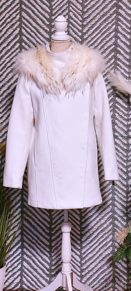 Krásný bílý dámský přechodový kabátek - flaušový ,podšívka klouzavka - značka MANGO - velikost M ... Kabátek má skryté dvouřadé kolmé zapínání na druky,poslední dva druky na límci viditelné,s efektem hlavičky šroubu - dvě kapsy - na konci rukávů funkční zipy ...Délka 75cm - rukáv od krku 70cm - prsa 2 x 52cm - boky 2 x 55cm...Kabátek je krátce nošený,bez vad ... Ke kabátku je volně položený luxusní límec z umělé kožešiny - imitace liška ,bílý dlouchý chlup na konci černě stříknutý...Límec je s podšívkou a je luxusní,nepřehlédnutelný,jak nový - dá se prát normálně v pračce,zvládne i sušičku - doporučuji občas lehce přečísnout - mi nejvíc vyhovuje kartáč na psy nebo kočky...Cena je za kabátel i límec dohromady - NEDĚLÍM