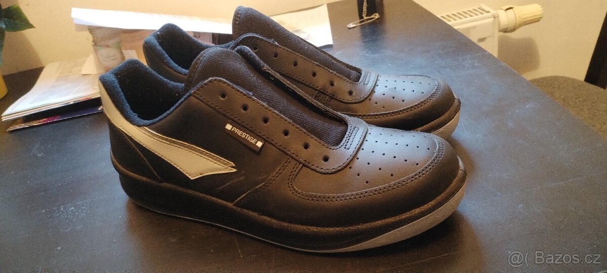 Prodám velmi málo (asi 3x) nošené Prestige černé, velikost 45, tkaničky v ceně. Drobné známky nošení, odřenina na pravé botě, žmolky od bílých ponožek (viz. foto).