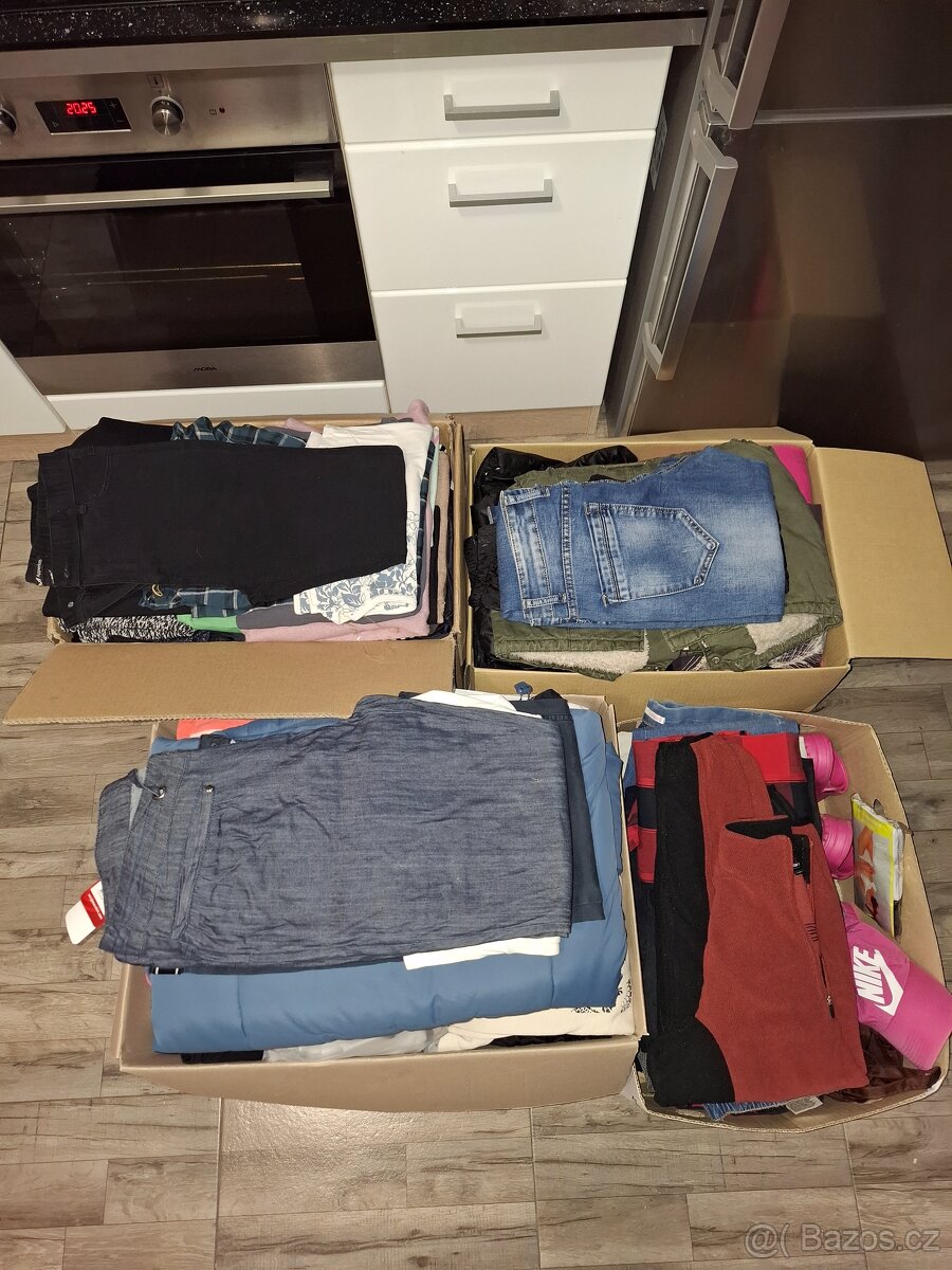 Jako celek, mix velikostí a mix oblečení. Vše po našich dětech. Nastřádané, již nevyužijeme, potřebuji místo. Spíše dámské/dívčí xs-xl. 4x větší krabice. Mohu předat v Tymákově.