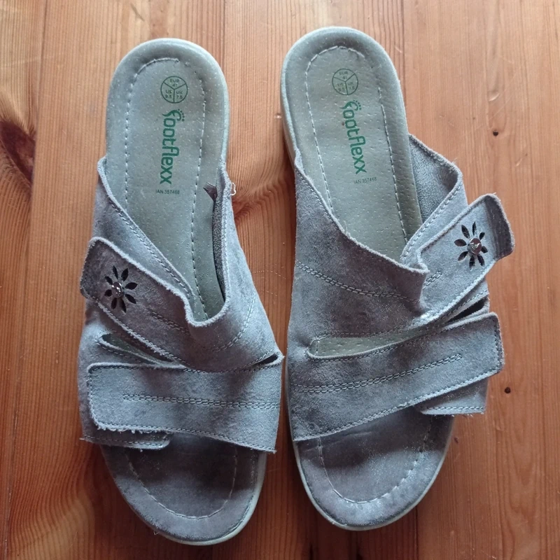 Kožené pantofle na klínku, přezky na suché zipy. Zn.Footflexx