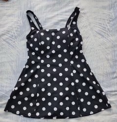 Plavky ve střihu šatiček, vhodné pro plnější postavy, kdy zakryje bříško. Prsa vystužena. Zcela nové, nepoužité.
