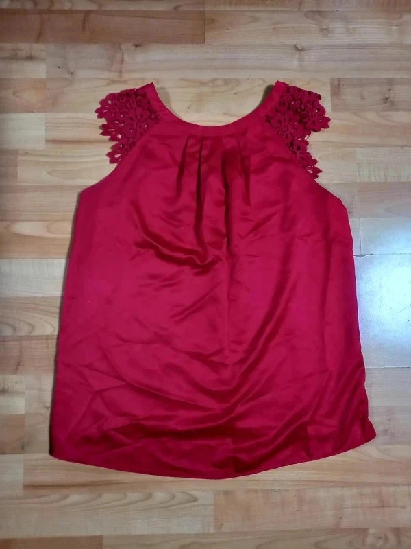 Červená saténová halenka vel M - [9.2. 2026]Lehká halenka s děrovanými rukávy a malými krystalky, zepředu také děrovaný střih.Idealni do společnosti, na schůzku,na focení