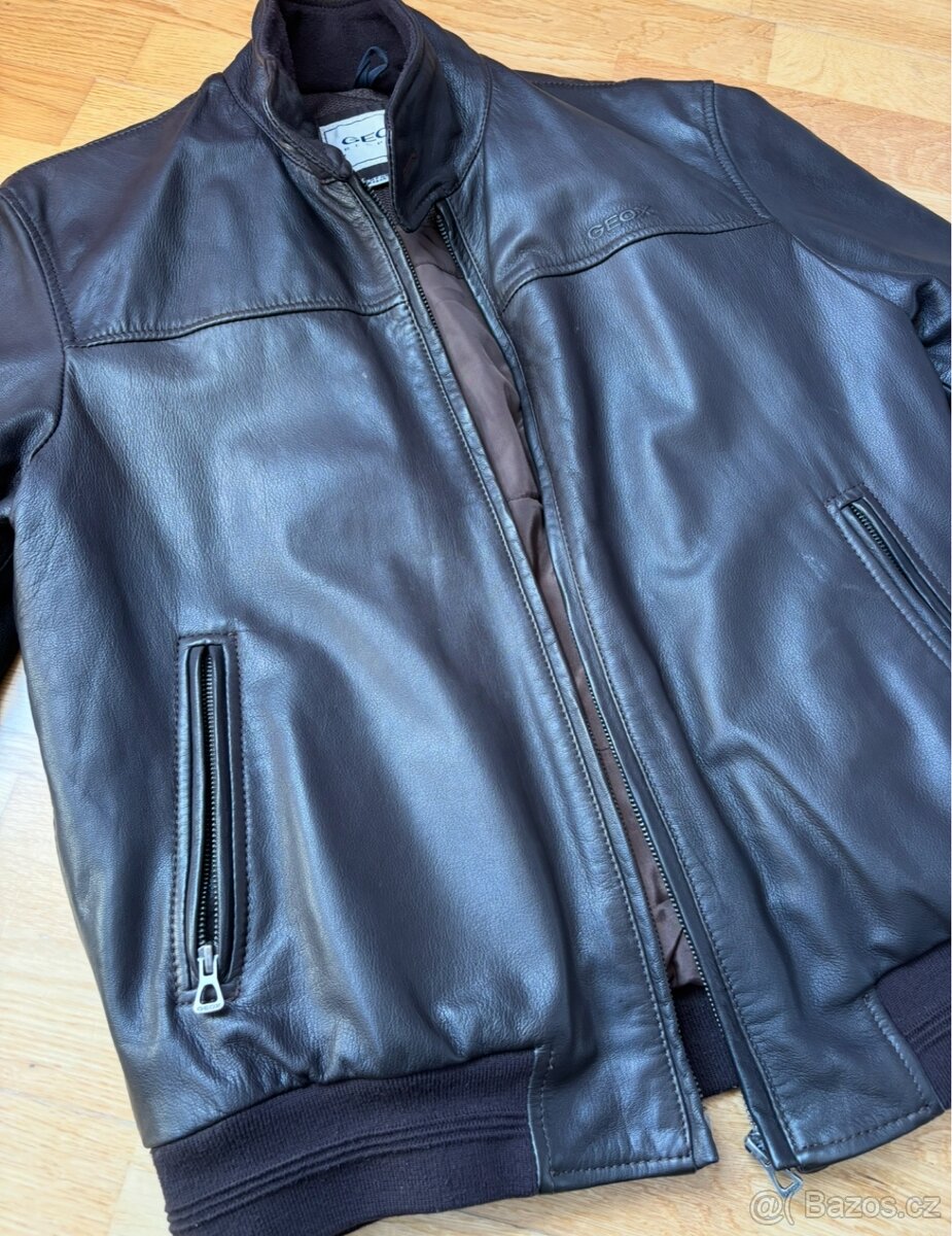 Prodám luxusní pánskou koženou bundu značky GEOX Respira v tmavě hnědé barvě. Pravá měkká kůže, kvalitní zpracování, prodyšná podšívka GEOX pro lepší komfort a odvod vlhkosti.