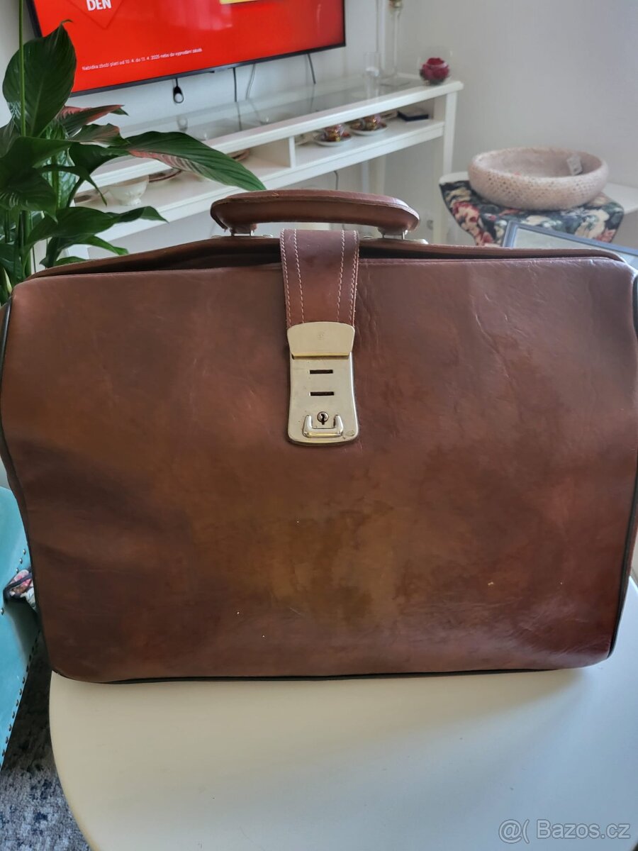 Hnědá kožená pánská aktovka z roku 1971 ve výborném stavu