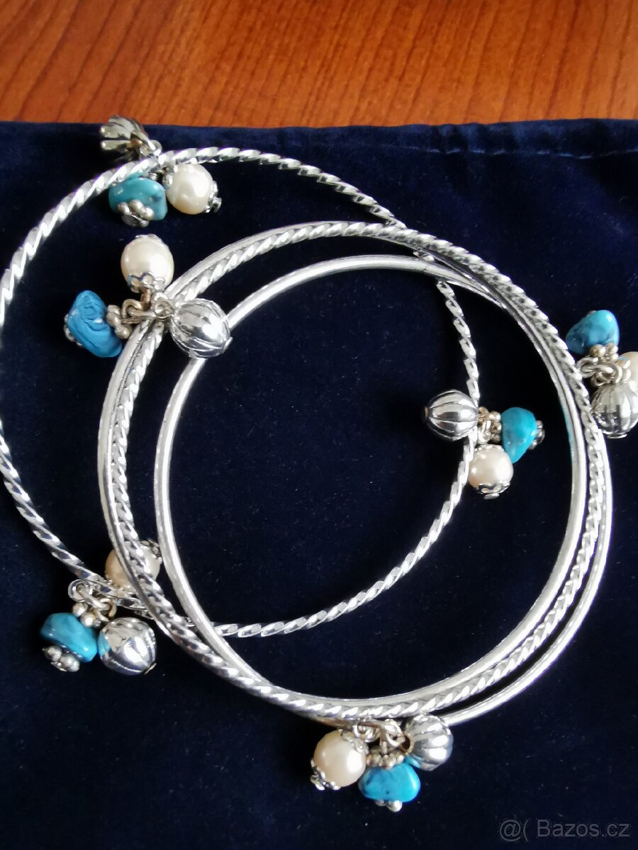 Prodám novou sadu náramků s perličkami a modrými kamínky.