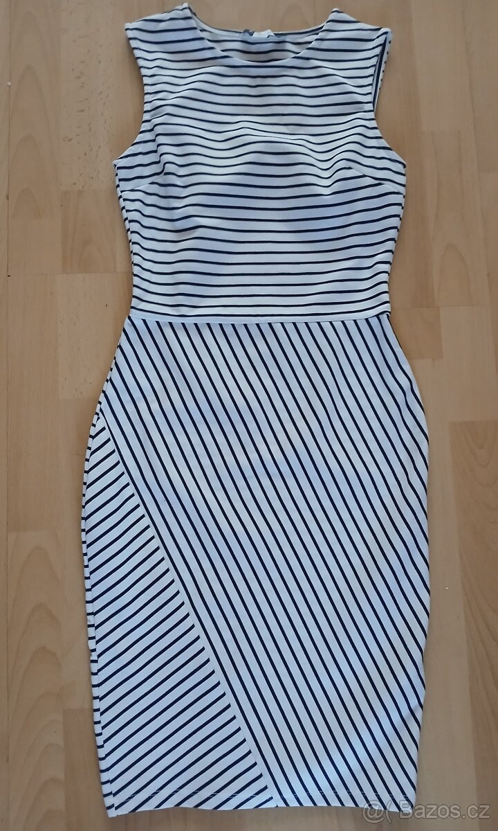 černobílé pruhované šaty, zn.Basic - [26.1. 2026]vel. 38, prsa 2x47, pas 2x43, boky 2x48, délka 98 cm