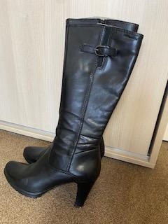 Prodám černé kožené vysoké kozačky pod kolena zn. Tamaris, velmi málo nošené, vel.38, na štíhlou nohu, elegantní, výška podpatku 8cm, lýtko objem cca 35-36 cm, pořizovací cena 2699,- Kč. Nejlépe osobní předání Příbram a okolí, Praha-Smíchov nebo Praha - metro Budějovická.