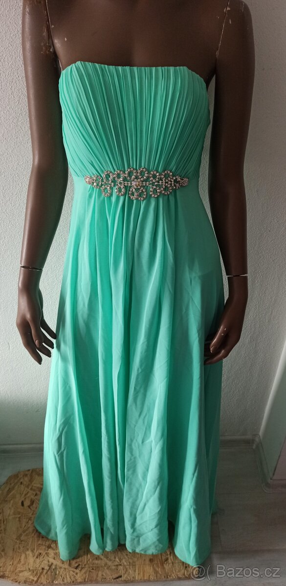 Plesové šaty tyrkysové barvy, jednou na sobě, velikost 38. Původní cena 3900Kč v obchodě Press. Šaty jsou vyčištěné z čistírny