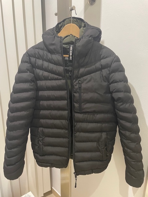 Pánská prošívaná bunda THREADBARE, velikost S. Dvě boční kapsy na druk, jedna vnější náprsní kapsa a jedna vnitřní kapsa. Jednou nošená, prodej z důvodu nevhodné velikosti.