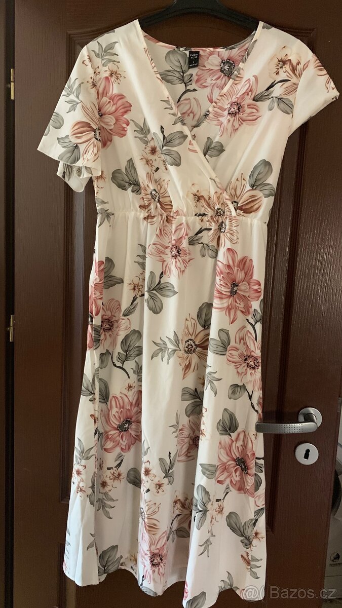 Prodám téměř nové krásné šaty vel. L. Zn. SHEIN. Vhodné ke slavnostním příležitostem. Jsou lehounké s květinový vzorem. Příjemný materiál.