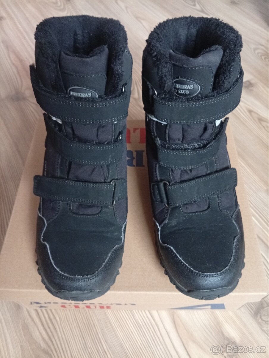 Chlapecké zimní boty American club, vel. 39, nošené jednu sezónu. Pouze osobní odběr, případně na trase Jičín - Mladá Boleslav.