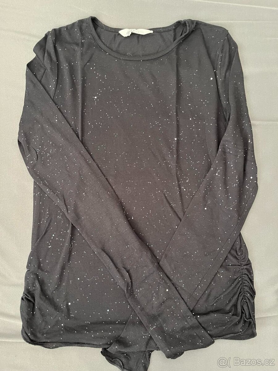 Krásné bavlněné triko s dlouhým rukávem, sytě černé (na fotce není černá tak černá) s drobnými třpytkami pro dívku vel. 158/164, vhodné jak na denní nošení, tak třeba na společenskou akci, super stav.