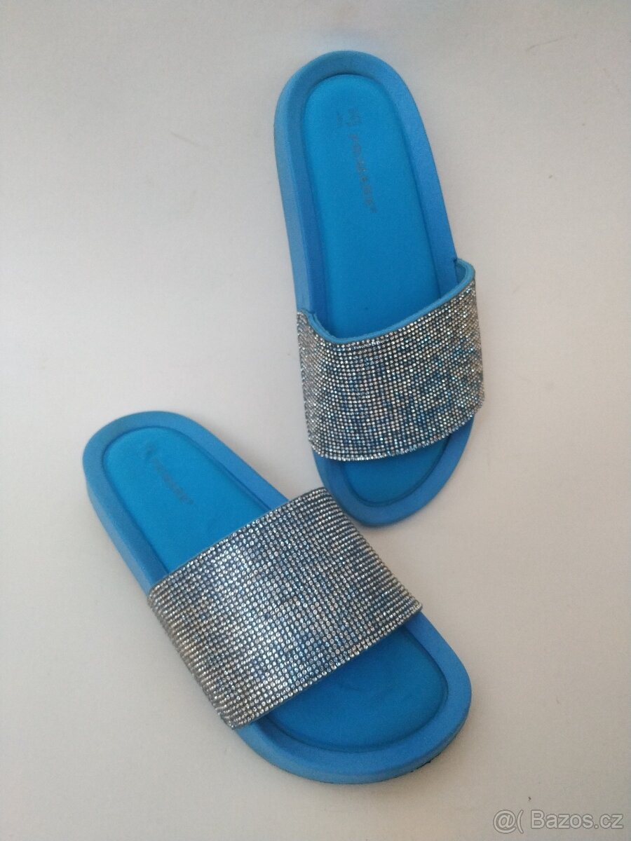 Dámské nazouváky s kamínky, dámské žabky, pantofle, velikost 39. Párkrát na noze , jako nové