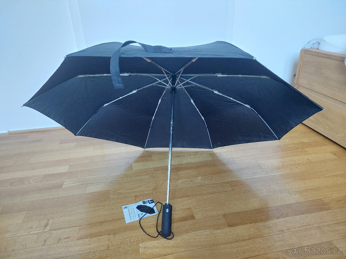 Automatický skládací deštník Tchibo, černá barva. Otevírá se a zavírá stisknutím tlačítka, odolný proti větru. Nový, nikdy nepoužitý.