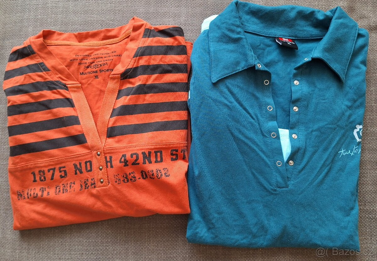 Oranžové - vel XL, délka 57, podpaží 45, pas 41, dole 47, rukáv od krku 65 cm