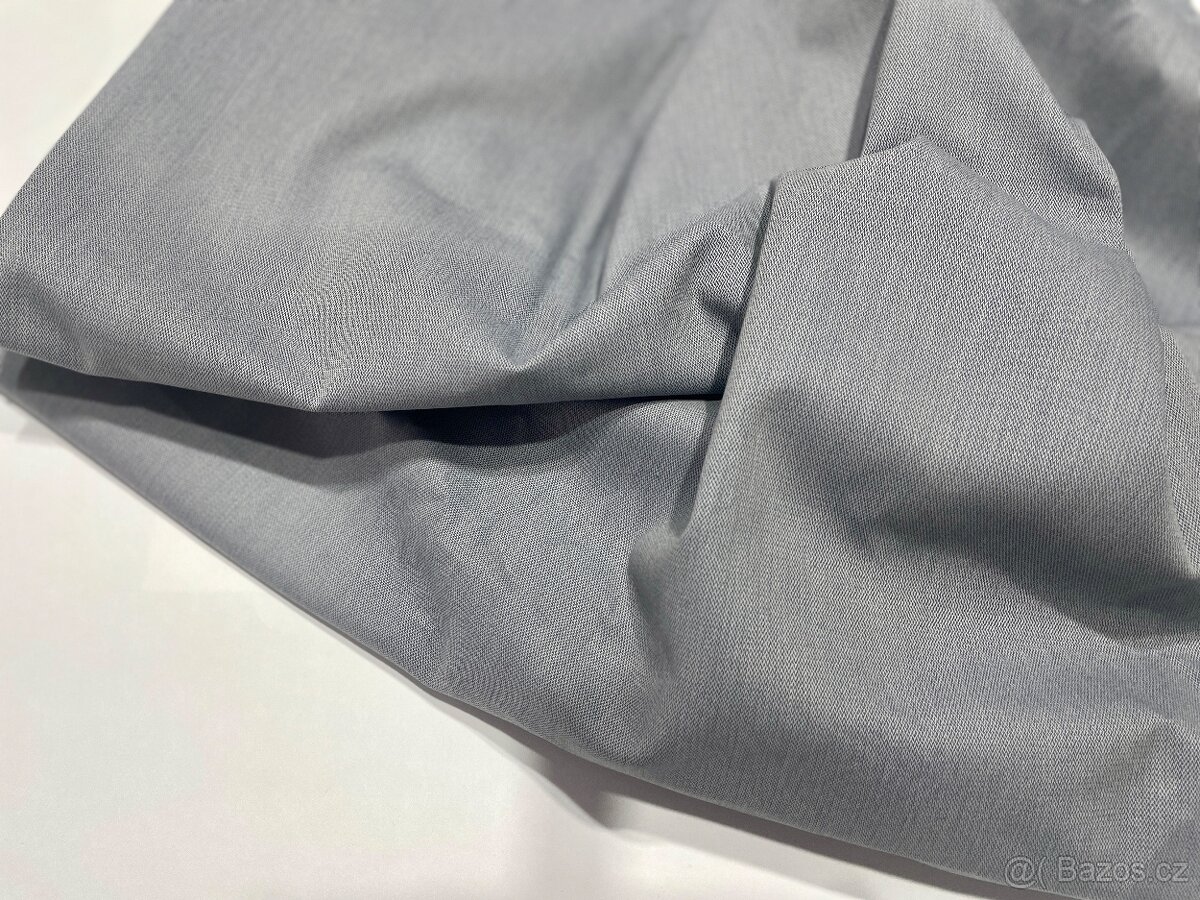 Středně silná tkanina, šedé barvy, měkká a nepružná. Použití na saka, bundy, kalhoty, vesty, kabáty, kraťasy, sukně, pouzdrové šaty aj.
