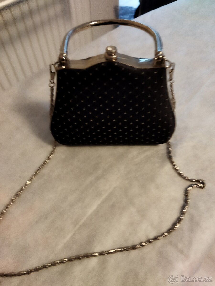 Společenská černá kabelka se stříbrným prošíváním. V 13,5 cm, Š 16,5 cm v nejširším