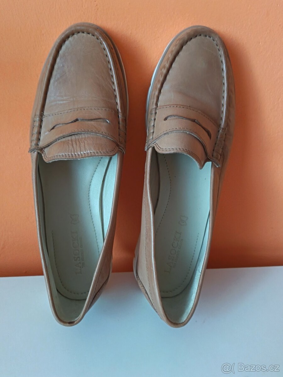 Prodám dámské mokasíny zn. Lasocki vel. 41 nové, kožené béžové barvy. Stélka 26 cm.Osobní odběr Praha Stodůlky. Zašlu pes zásilkovnu nebo balíkovnu.