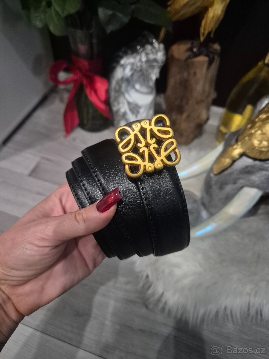 Nabízím kožený pásek Loewe černý se zlatou přezkou.