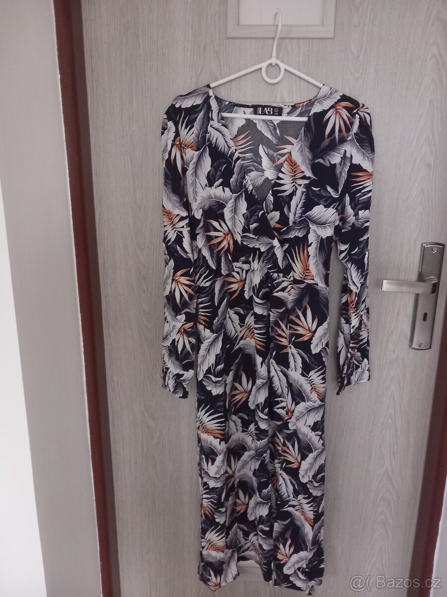 Bavlněné s podšívkou,v pase pásek,výstřih do v, dlouhý rukáv,jednou nošené