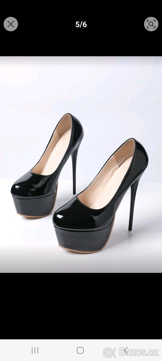 Prodám dámské lodičky černé velikost 44,výška platformy 6cm,výška podpadku 16cm, délka stélky 27. 5cm,nové, nikdy nenošené, jen vyzkoušené, špatná velikost. Osobní odběr Olomouc, nebo platba dopředu na účet, na posíláňí na dobírku už jsem se spálil. Cena 700 plus pošta cca100kč