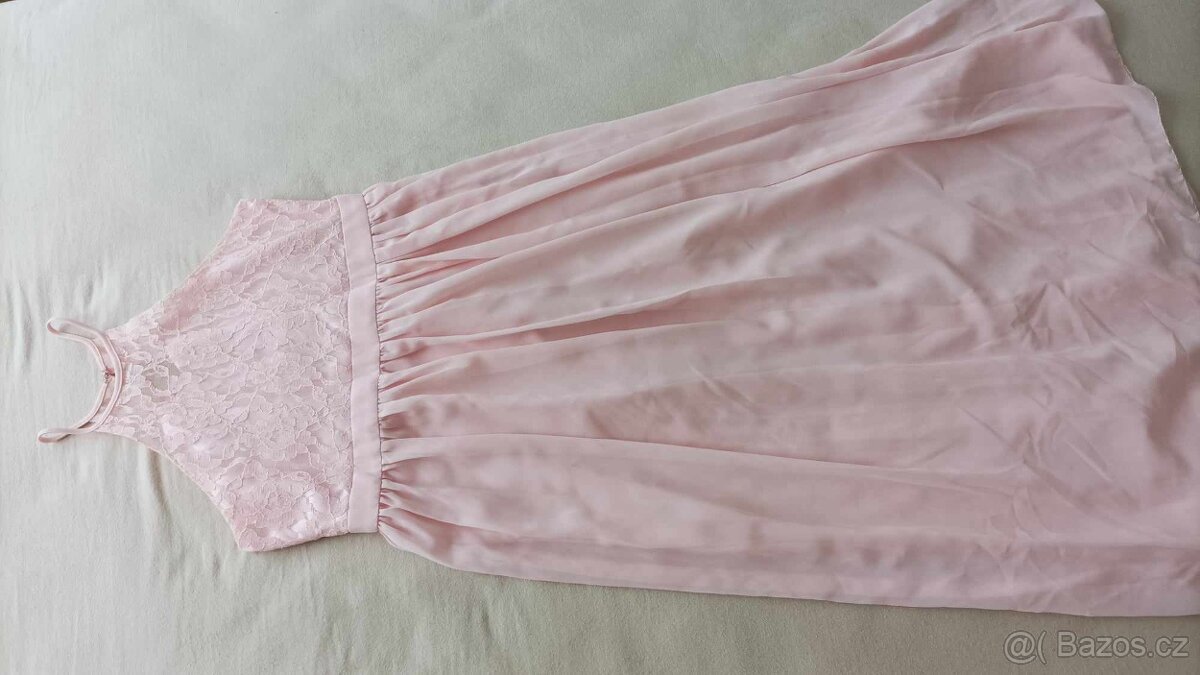 Prodám čtvery bledě růžové šaty s krajkou. Možno prodat i jednotlivě. Použito jednou na svatbě. Cena za kus 200,-