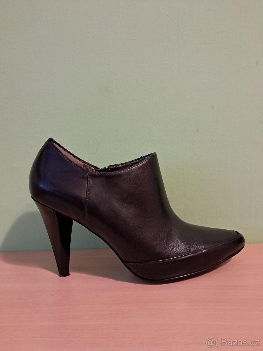 Prodám dámské černé kožené boty na podpatku Baťa Insolia, velikost 38. Výška podpatku 7,5 cm. Jen málo nošené. Cena 300,- Kč + poštovné (Balíko na 75,- Kč)