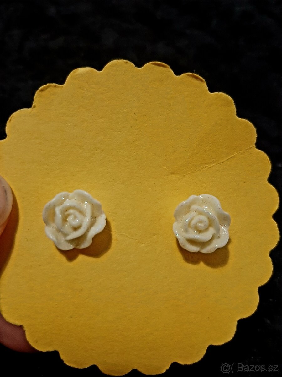 Prodám náušnice ve tvaru kytiček. Krémová barva, jemné třpytky. Nenošené.