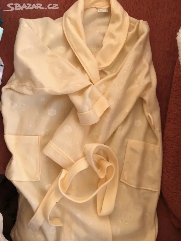 Prodám nový dámský župan z bavlněného vaflového piké. Je lehký, má šálový límec a vázací pásek. Barva žlutá, vel. 50/52