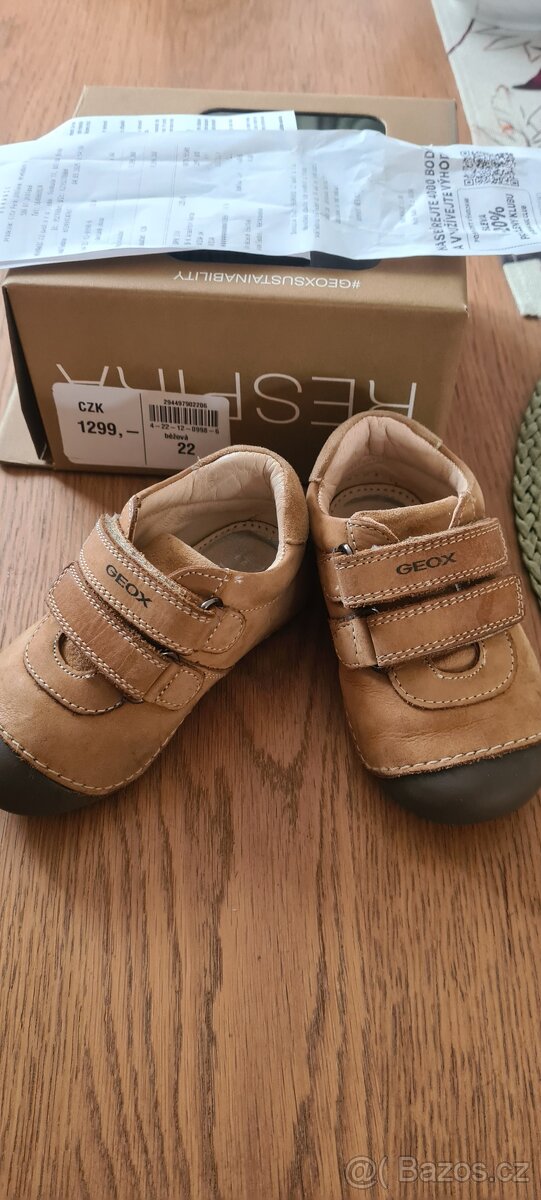 Kupovány 24.3.2025, stále tedy v záruce. Syn je měl jenom v kočárku (nechodil), jsou tedy ve stavu nových. Kvalitní kožené boty velikost 22. PC 1299 nyní 500 kč.