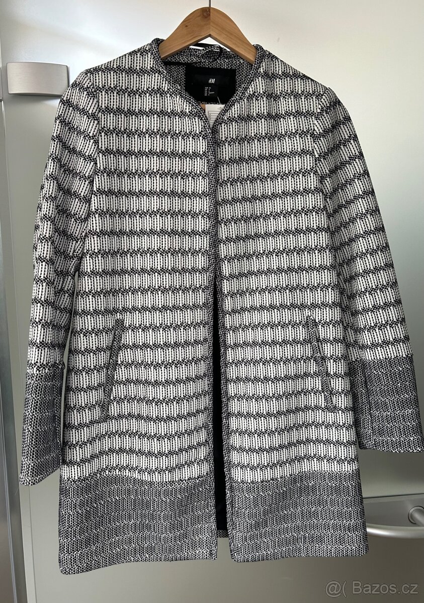 Prodám úplně nový dámský jarní kabátek HM vel. 36, barva bílo-černá vzorovaná, uvnitř černá podšívka, 2 kapsy na ruce, délka od ramene dolů 78cm. Nový ještě s visačkou.