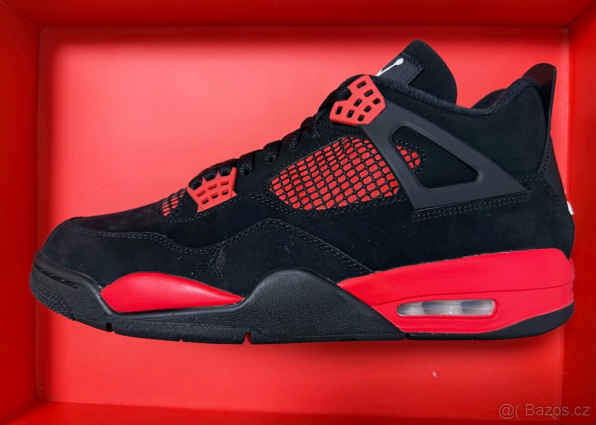 🔥 Jedná se o populární model Air Jordan 4 Retro „Red Thunder“ – černá s výraznými červenými detaily, velmi žádaná silueta značky Nike/Jordan.