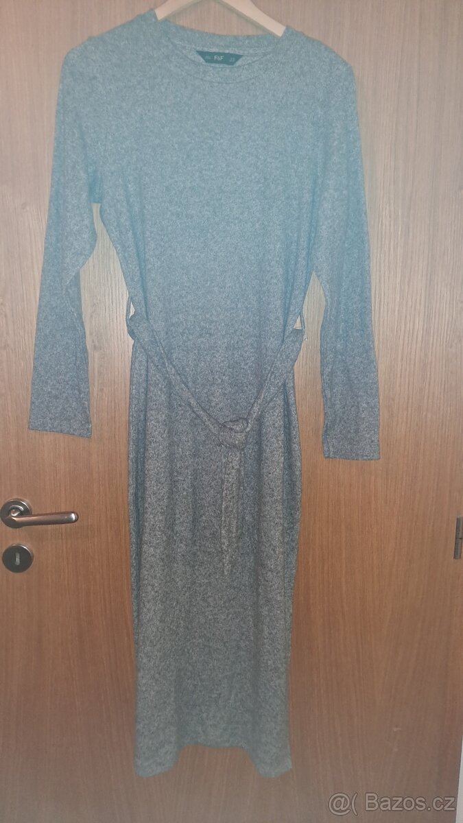 F&F: šedé dlouhé zimní šaty s páskem, nenošené
