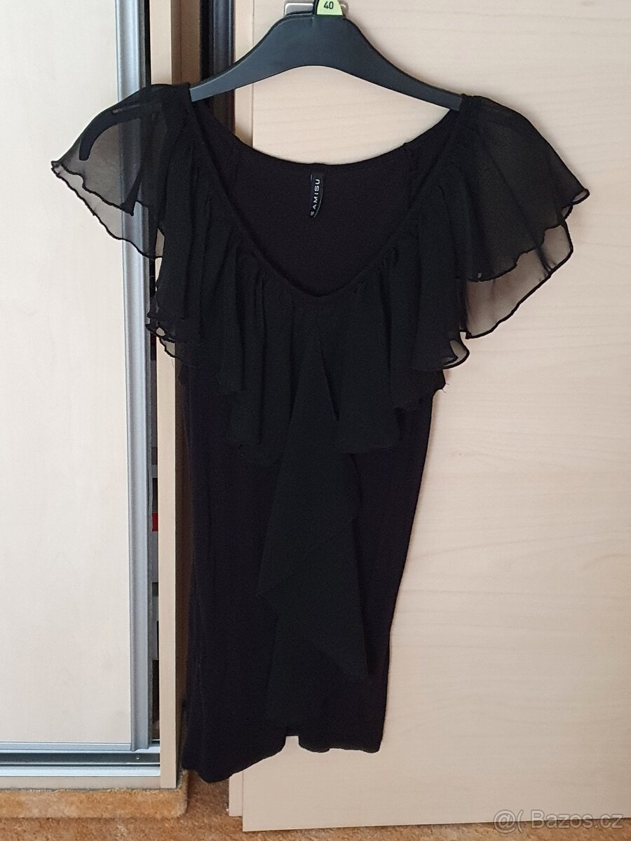 Nové, top, vel. 36-38, nepoužívané, trup bavlna, vršek šifon. Pro štíhlou postavu. Opravdu černá barva. Foto hází bledý odstín nebo nějaké stíny, ale je to celistvá černá barva jako na posledni fotce.