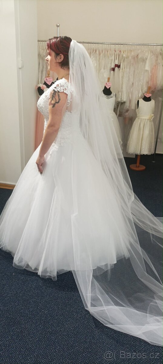 Původní cena 20.tis. Nakonec jsem se nevdala takže nepoužité mají dlouhý závoj a kruhovou spodničku . Klidne prodám pod cenou. A cena dohodou.