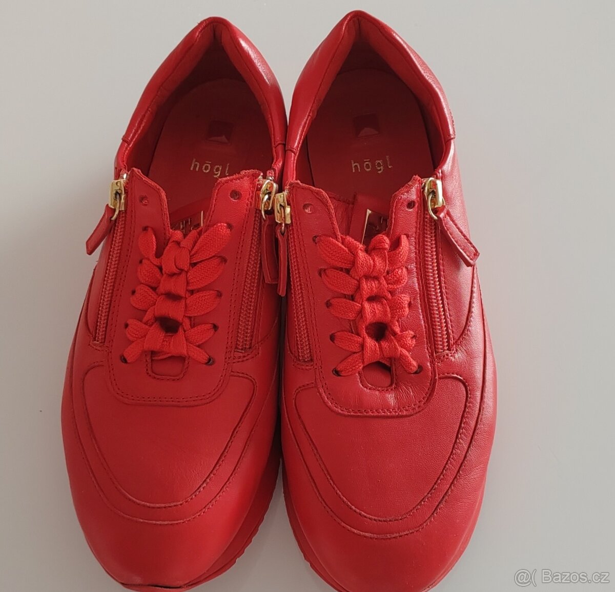 Prodám téměř nové kožené polobotky Högl, červená barva, velikost 38, měkká hladká kůže.