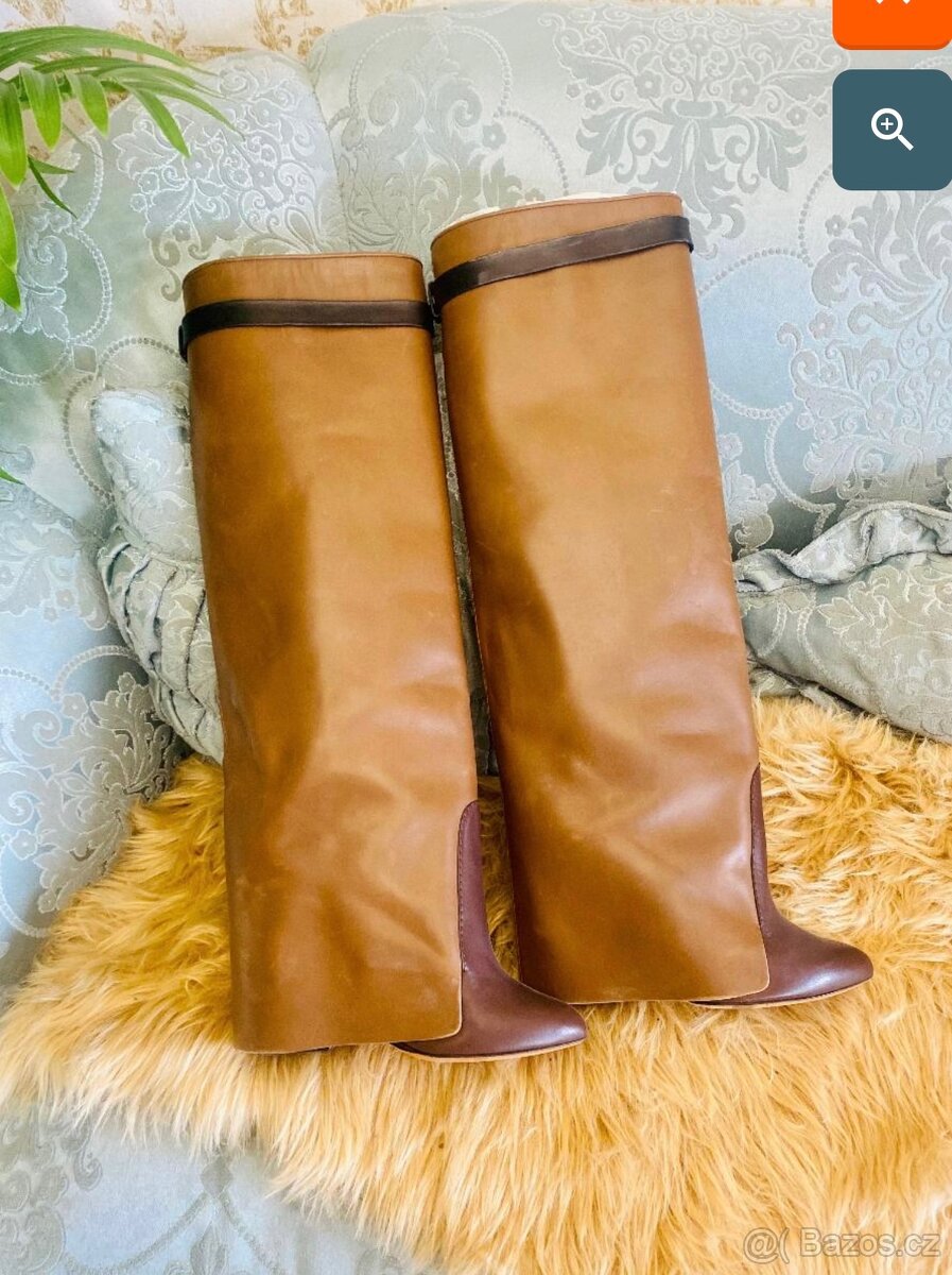Luxusní kozačky, které si oblíbily módní ikony. Vlastní je mnoho celebrit právě v této barvě. Elegantní, chic vysoké boty z jemné telecí kůže. Vel.38,5. PC 33.075,-Kč. Vzaté snad jen 2x, velmi hezký stav viz. foto. Včetně dustbagu a originálního balení.