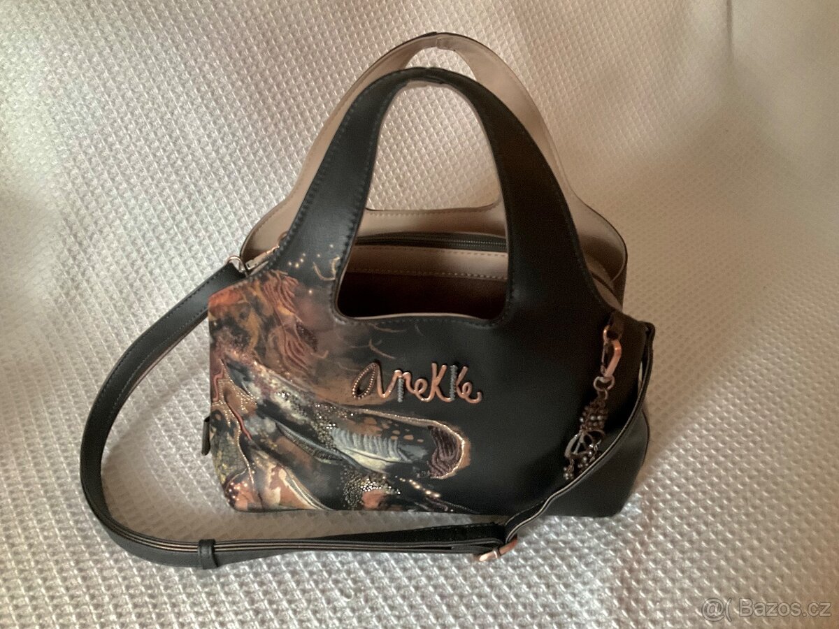 Prodám kabelku Anekke z kolekce Dreamverse, rozměry : 31 x 23 x 10 cm, základní barva hnědá, zapínání na zip, 2 vnější přihrádky, uvnitř 3 malé kapsy, popruh na rameno. Stav jako nová.