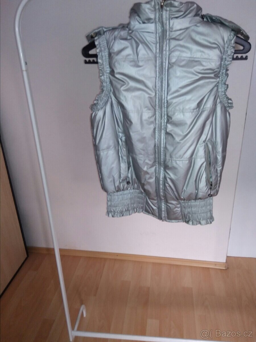 Krásná dámská stříbrná vesta s kapucí vel. S