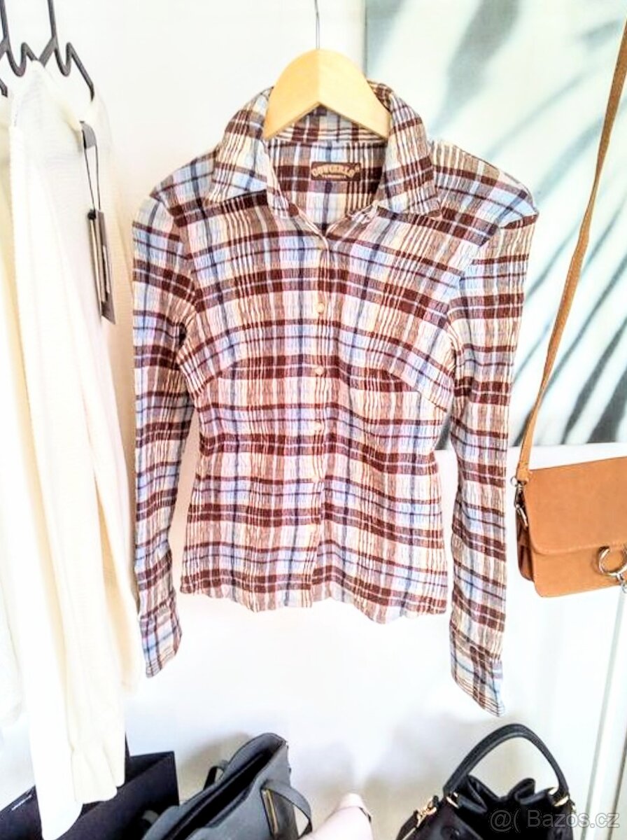 Dámská košile – barevná, kostkovaná - [2.2. 2026]Nošená, se známkami běžného použití. Má vyhrnovací rukávy s poutkem, pohodlná a stylová, vhodná na každodenní nošení.