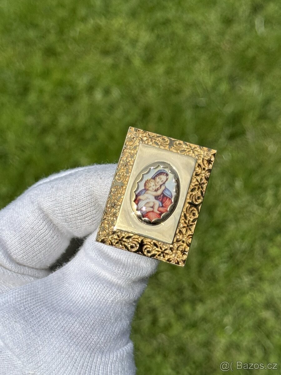 Zlatý prsten 10,32g - [16.2. 2026]Nabízíme k prodeji zlatý prsten se zeleným syntetickým kamenem a madonkou. Řádně opuncováno. Použité zboží.