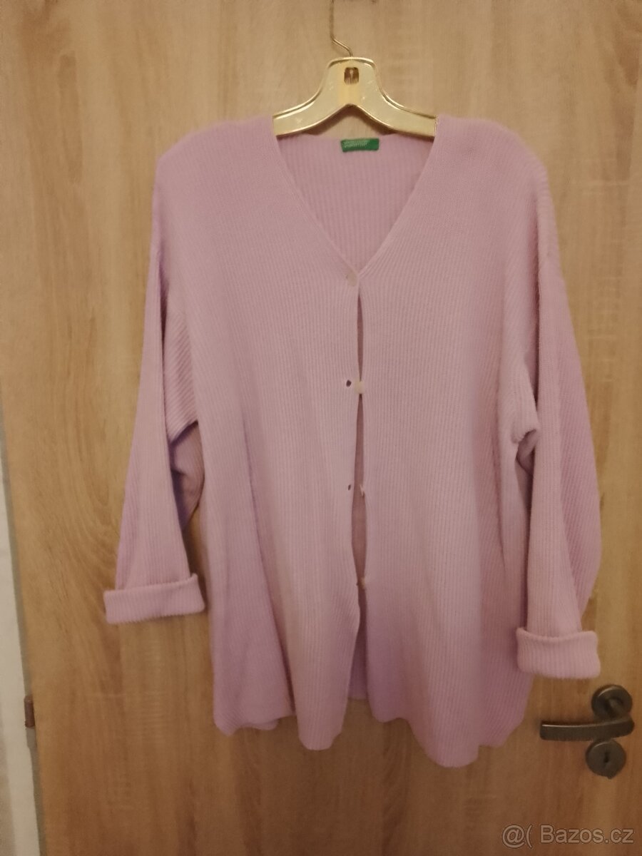 Prodám velký dámský bavlněný svetřík Benetton, barva lila, šířka 60 cm a pruží, délka 74 cm.
