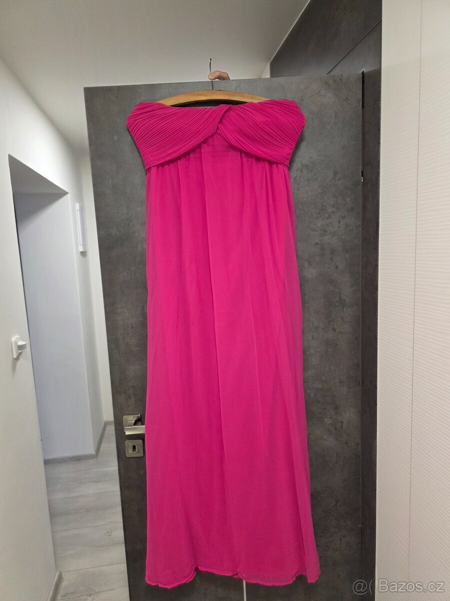 Krásné růžové plesové šaty, sahají téměř k zemi při výšce 172 cm, cena 290,-