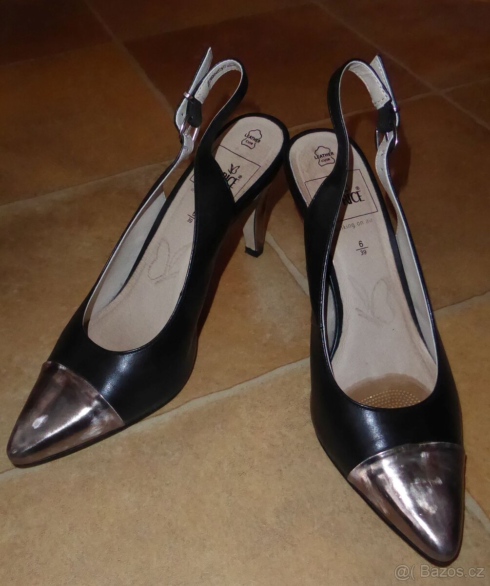 Krásné kožené lodičky zn. Caprice. Drobné vady - podpatek (viz foto), vlepená gelová vložka - lze vyndat. Známky běžného nošení.