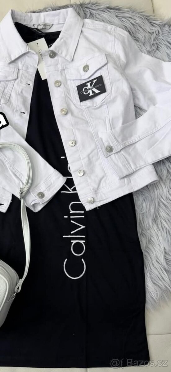 Krásné zcela nové šaty CK, krátký rukáv,kapsy,logo vyšité, pružné, bavlna+elastan, vel.sedí na S,M. Prsa 45 cm, boky 50 cm, délka 92 cm. Natáhne se až na prsa 100, pružné.Turecké zboží