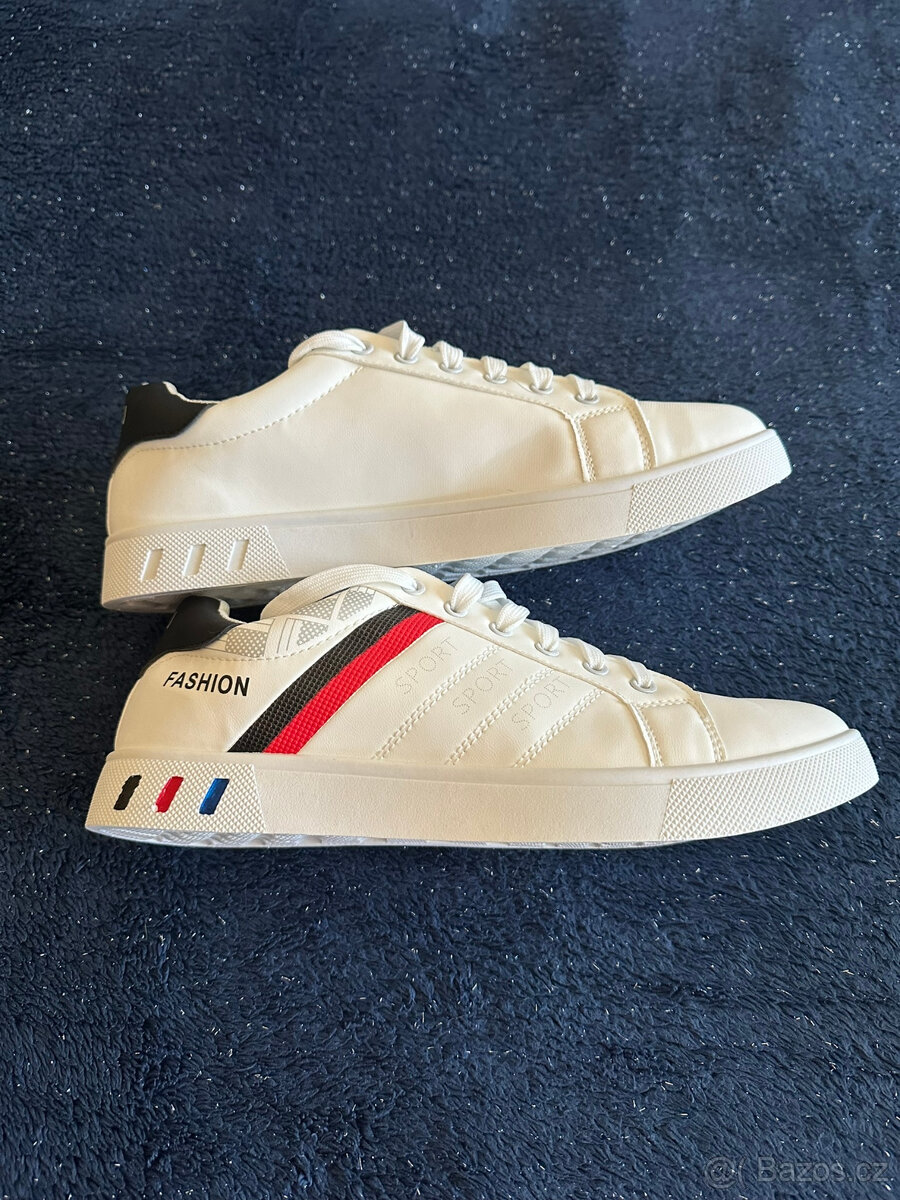 Prodám nové, nenošené bílé tenisky značky FASHION, vel. na podrážce 48, stélka 29,5 cm. Důvod - špatná velikost,