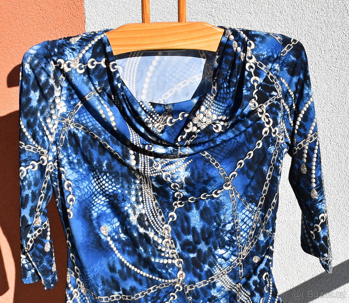 Triko Simonton modravé, zajímavý moderní vzor, výstřih do vlny se zátěží, vpravo na gumu, málo nošené, velmi příjemný materiál. Vel.S -36,38. 96% polyester, 4%elastan.Triko Marks & Spencer tmavě růžová, 3/4 rukávy, dole široký lem,málo nošené, velmi příjemný materiál. Vel.UK 14 ,100%bavlna.Triko Vero Moda tmavě oranžová, dlouhé rukávy, dole široká krajka,málo nošené, velmi příjemný materiál. Vel.S-M,100%bavlna.Triko UP šedé s potiskem, dlouhé rukávy s manžetkou, vzadu delší, málo nošené, velmi příjemný materiál. Vel.S-M, 80%bavlna, 20% viskoza.