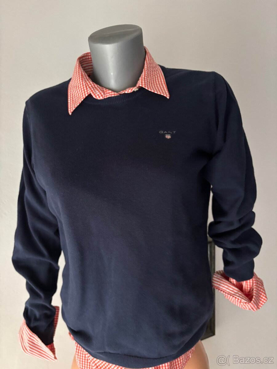 Nabízím k prodeji dámský svetr ve velikosti S značky GANT. Barva: tmavě modrá. Rozměry - průramky: 49 cm, délka rukávu: 58 cm, délka zad: 58 cm. Materiál: bavlna Praní: do 40°C. Svetr max 2x na sobě. Nevhodný dárek - potřebuji M.Na dobírku nezasílám. Osobní odběr, popř. zaslání po zaplacení předem na účet. Poštovné a balné 75,- balíkovna a 89,- Kč zásilkovna.