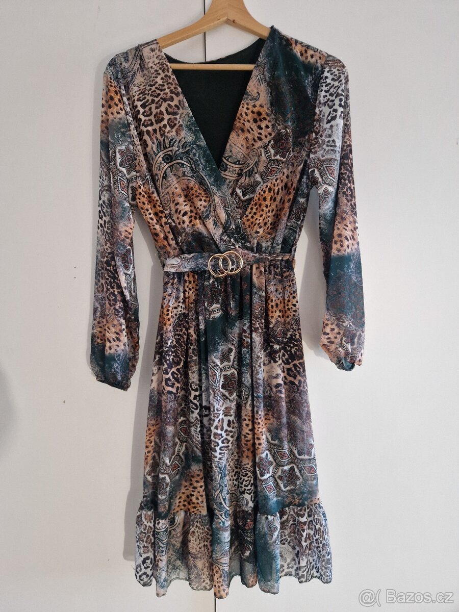Nové šaty S - [26.1. 2026]Supermoderní dámské letní šaty, extra slušivý střih a jedinečné barevné vzory, z velice příjemného, lehkého materiálu. zavazování za krkem.